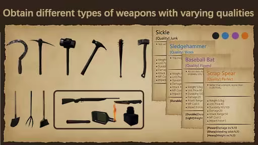 ● Weapons of various qualities come with different random entries.